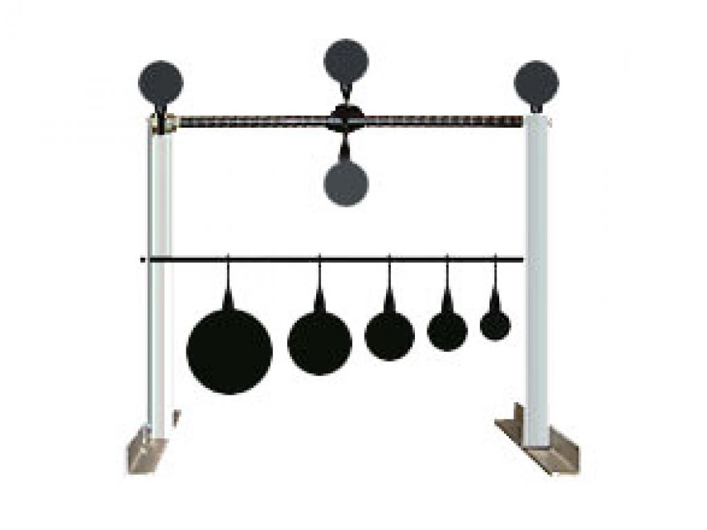Мишень Дуэльная - универсальная мишень, закрепленная на верхней перекладине вертушка позволяет в соревновательном режиме вести стрельбу одновременно двум участникам. В любом крайнем положении вертушка поднимает флажок. Победителем считается тот из участников, кто первым поднял флажок.Особенности:- - 5 подвесных кружков из 2 мм вороненой стали;
