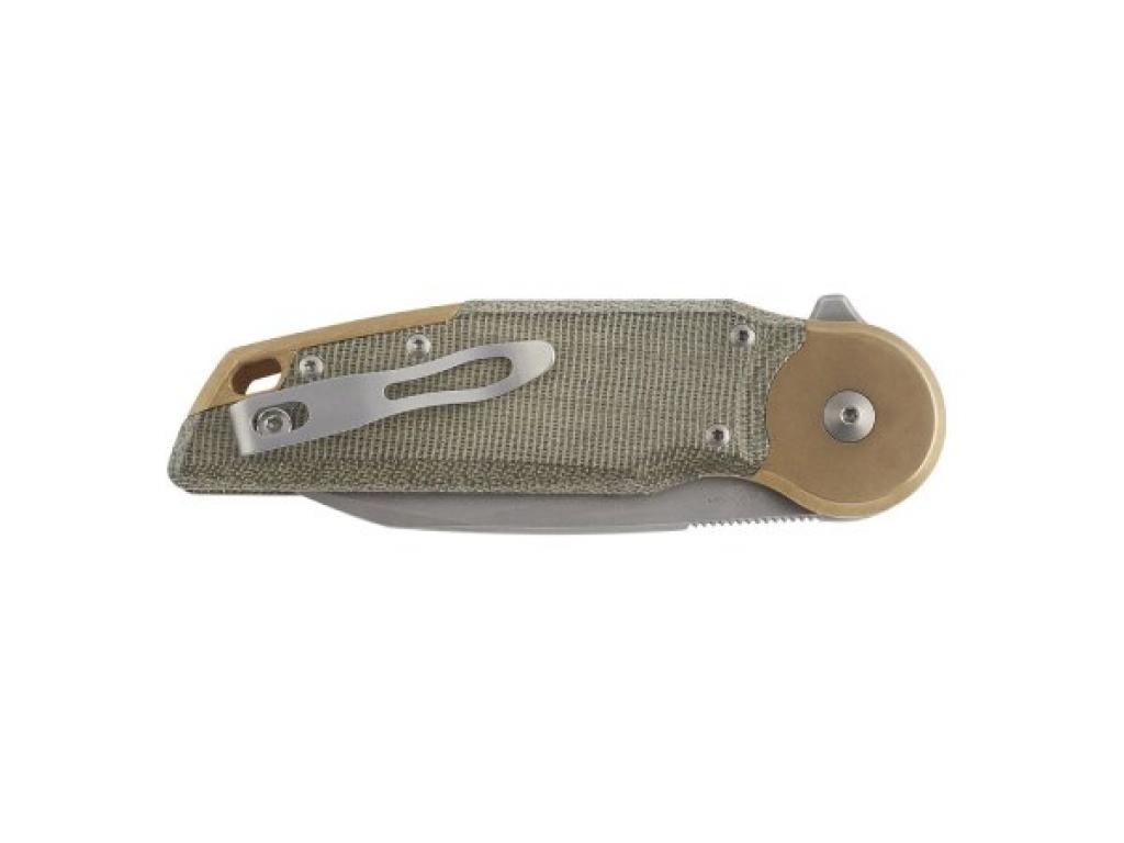 Нож Fox Knives FFX-556-B4 Metamorphosis для туризма, охоты, рыбалки. Применение стали M390 сделало клинок не поддающимся процессам ржавчины, твердым и износостойким. Основа рукояти состоит из высокопрочной латуни, поверх которой закреплены накладки из микарты. Микарта представляет собой композитный материал устойчивый к влаге, химическим веществам и ударам.