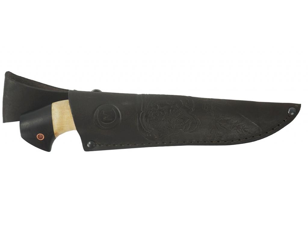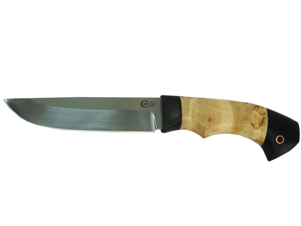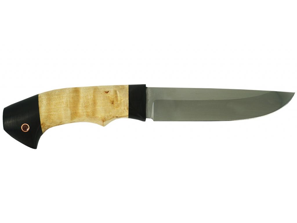 Нескладной нож Ястреб производства кузницы Семина (Ворсма), с кованым клинком и рукоятью из карельской березы и граба, может применяться как в повседневном обиходе, так и в качестве охотничьего, туристического, на рыбалке, в военно-спортивных играх.