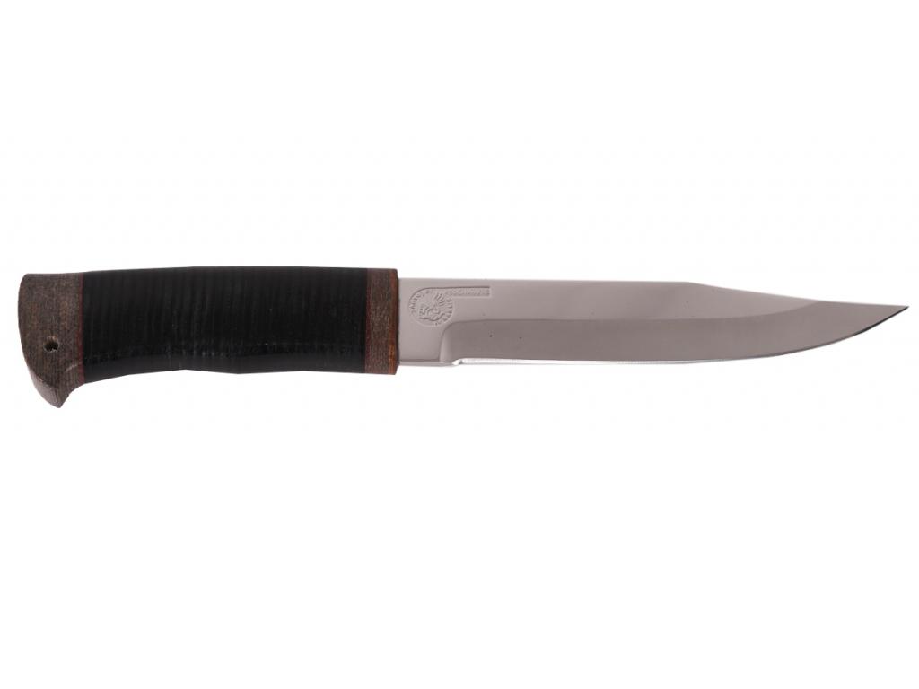 Универсальный нож с гравировкой на клинке. Хорошо держит заточку, стойкий к коррозии. Изготовлен клинок из стали марки 40X10C2M. Подходит для повседневного использования, охоты, рыбалки и туризма. Имеет классическую форму клинка.Особенности:- - нескладная конструкция;