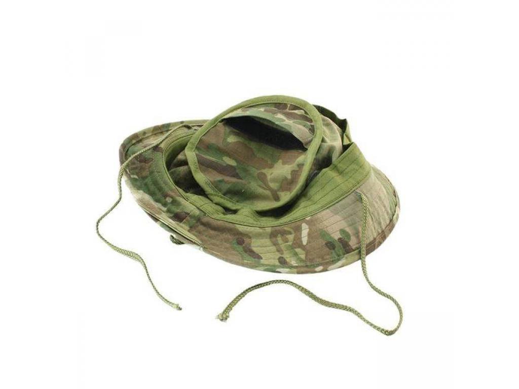 Панама Armacon Multicam для защиты головы от солнечных лучей. Оплетка паракордом позволяет отрегулировать охват головы, а также установить маскирующие приспособления. В модели предусмотрены отверстия для крепления регулировочного шнура вместе с люверсами.