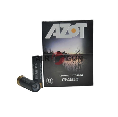Патрон 12x70 с пулей Трио AZOT - охотничий пулевой патрон калибра 12x70 с пулей Трио от знаменитого производителя патронов AZOT для снаряжения гладкоствольного оружия. Скорость 415-420 м/с. Давление 650-700 бар. Кучность 40-45 % на 50 м. Гильза п/э импорт. Капсюль СХ-2000. Масса пули 33 гр. Порох Сокол/Сунар. В пачке 10 патронов.