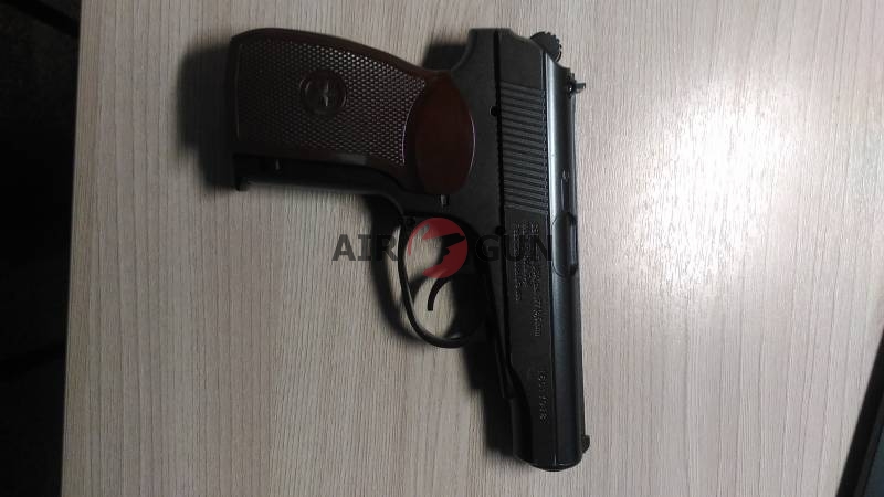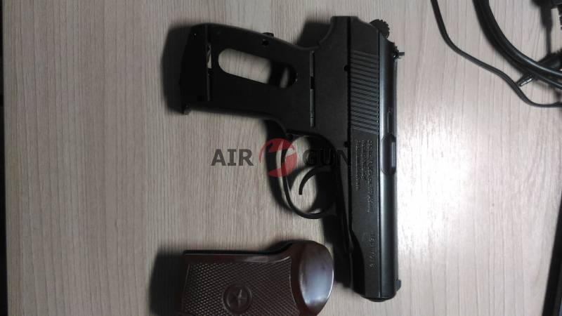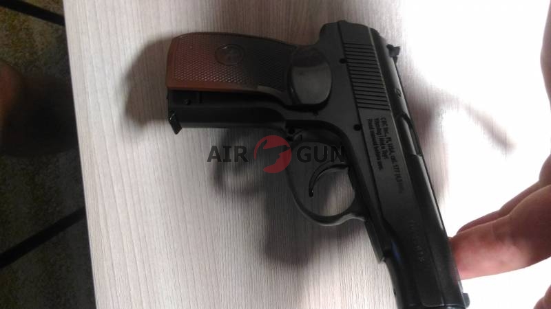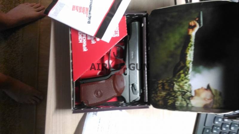 новый пистолет, дефект пластиковой накладки на рукоять, ни на что не влияющий. в коробке с документами , плюс несколько баллончиков и пули вв в подарок.