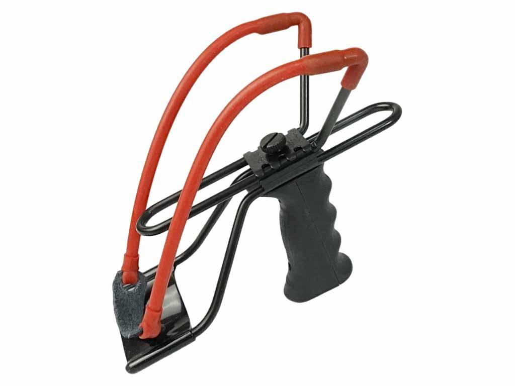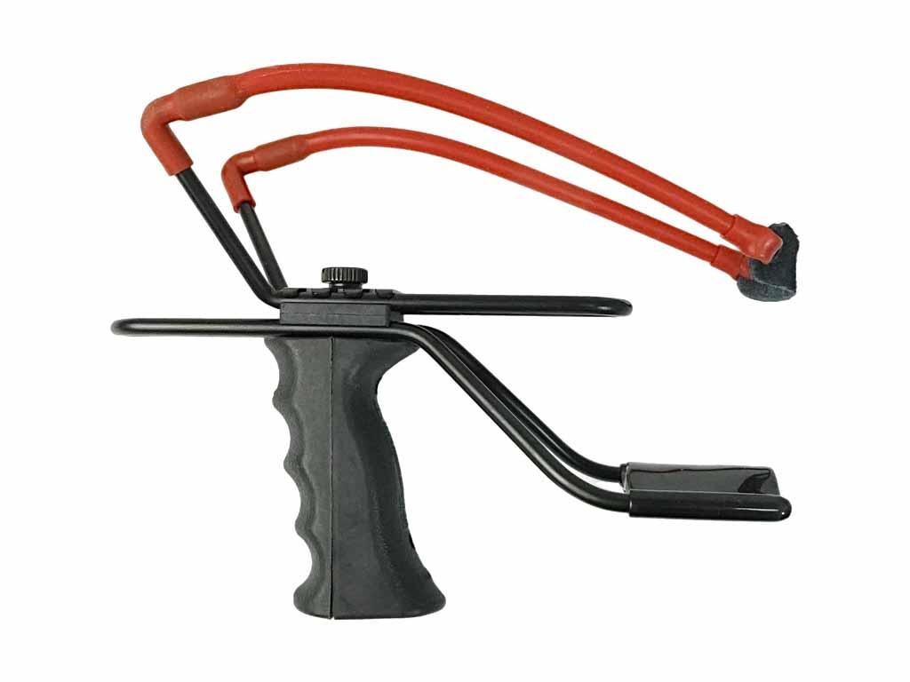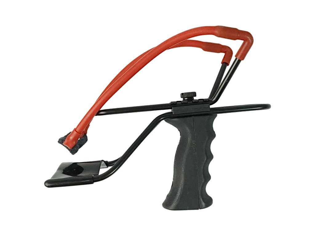 Эргономичная рукоять и упор под запястье обеспечивают крепкое удержание рогатки при стрельбе.