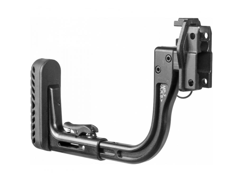 Приклад телескопический, раскладывается в несколько положений за счет удобной кнопки, которой и фиксируется. Складывается вправо или влево механизмом G36 ARS.