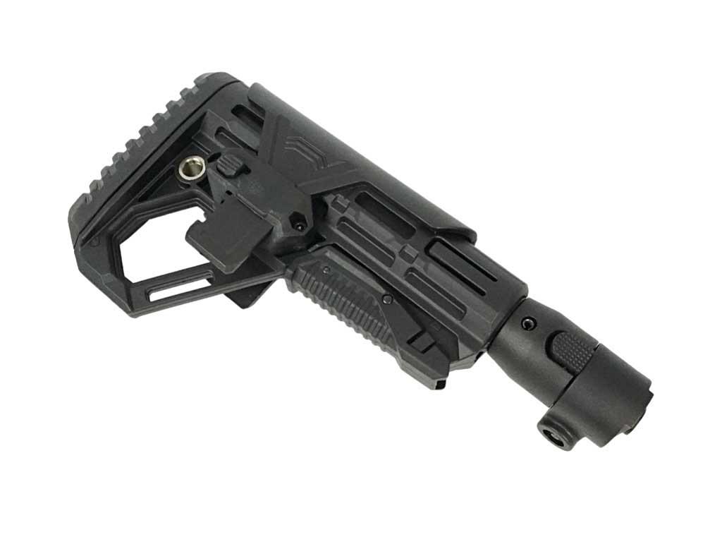 Приклад разработан к пневматической винтовке Kral Puncher Maxi 3 Mortal. Значительно повышает комфорт при ведении прицеливании и ведении стрельбы. Благодаря складному механизму, приклад можно сложить для того, чтобы уменьшить размер оружия при транспортировке.